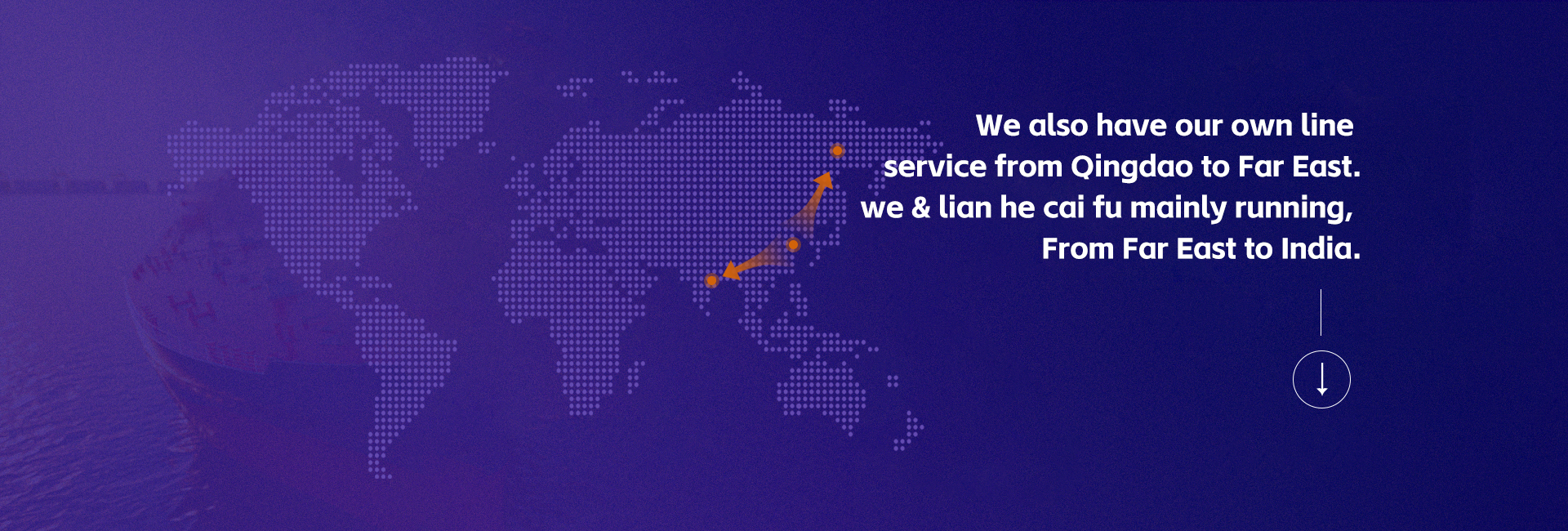 We have our own MPP VSLS which can load CNTRS, bulk cargo and machinery, etc.Our main liner services covers CHINA-FAR EAST RUSSIA-JAPAN-KOREA-VIETNAM-INDONESIA, Middle East, and APEC trade scope.